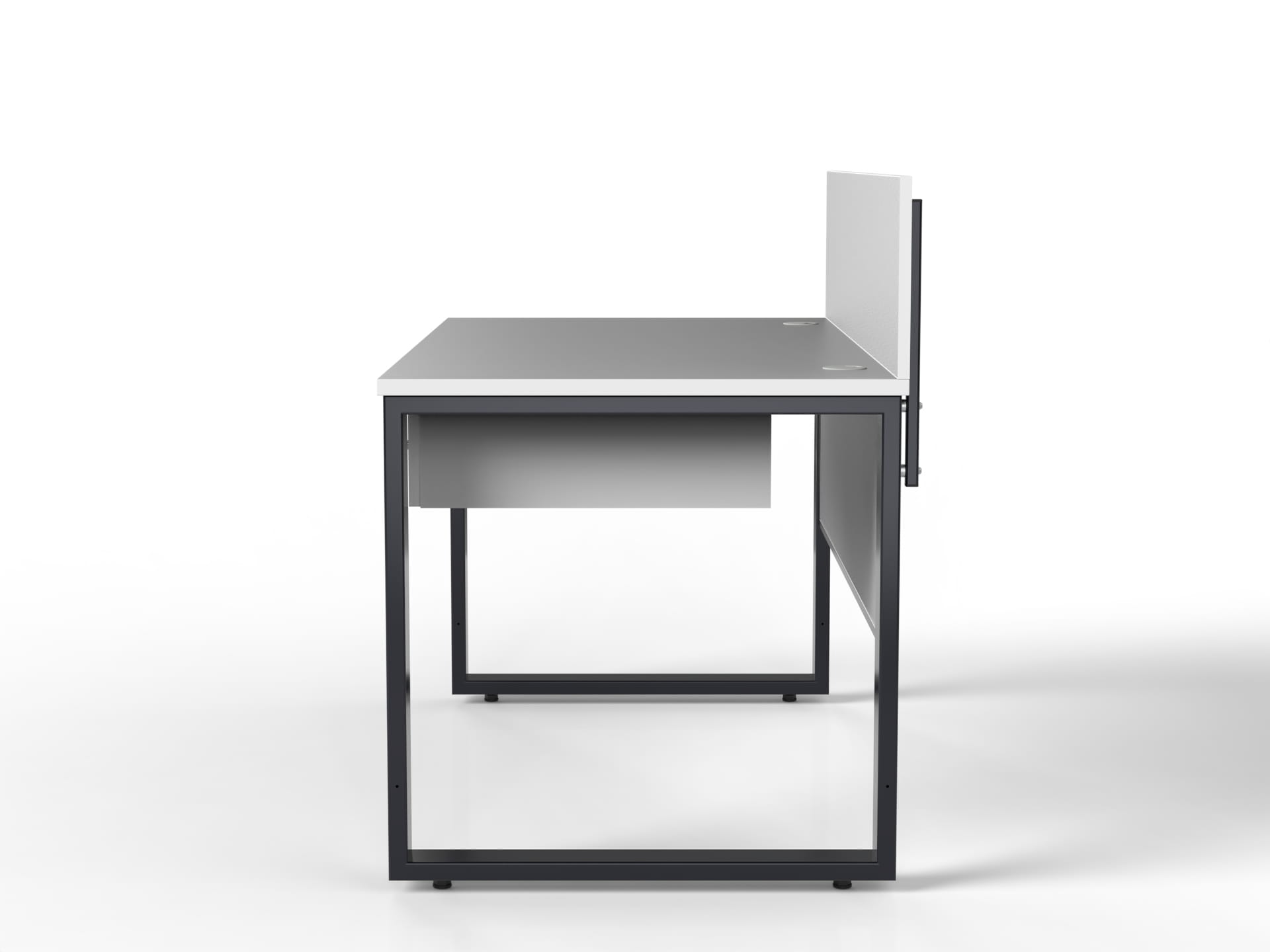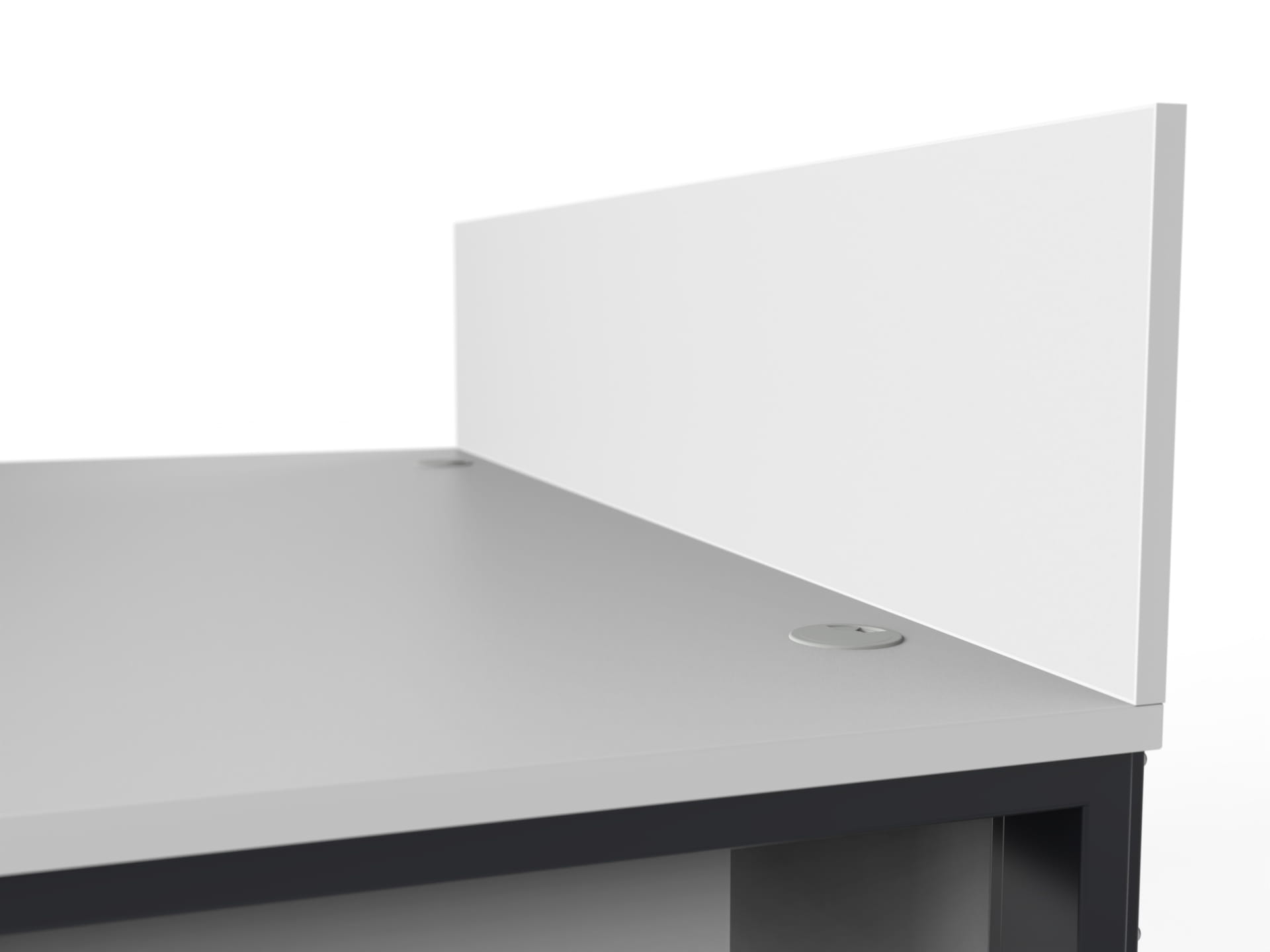 Top made of high quality 25mm thick RAL7035 colored particle board, veneered with ABS edge banding