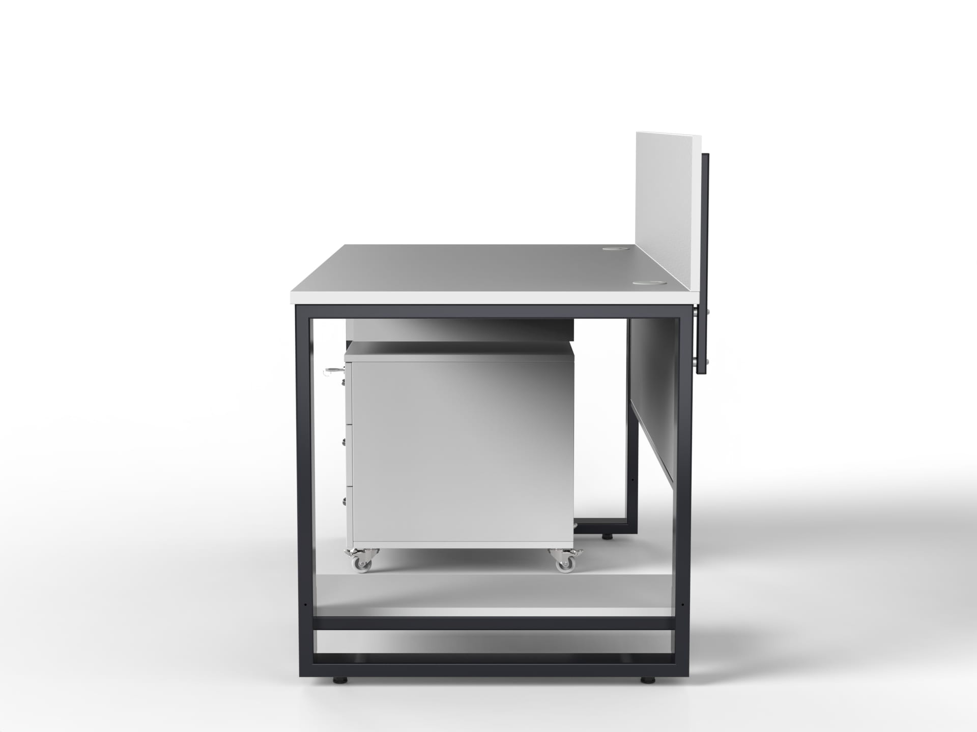 Top made of high quality 25mm thick RAL7035 colored particle board, veneered with ABS edge banding