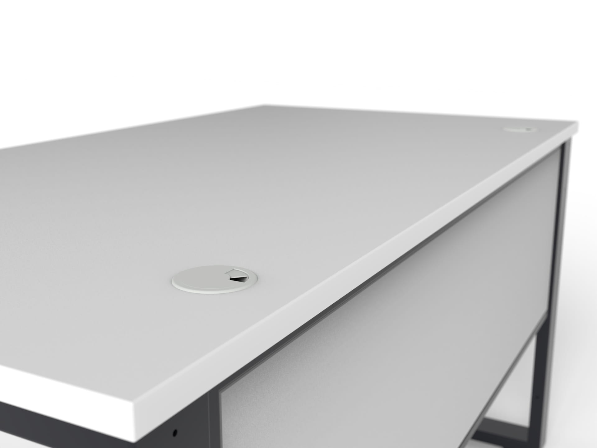 Top made of high quality 25mm thick RAL7035 colored particle board, veneered with ABS edge banding