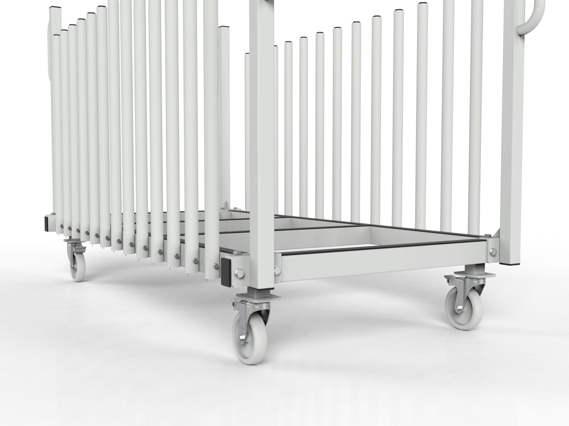 - handles for guiding the trolley on supports in the corners of the structure, each at a height of 1106 mm from the ground