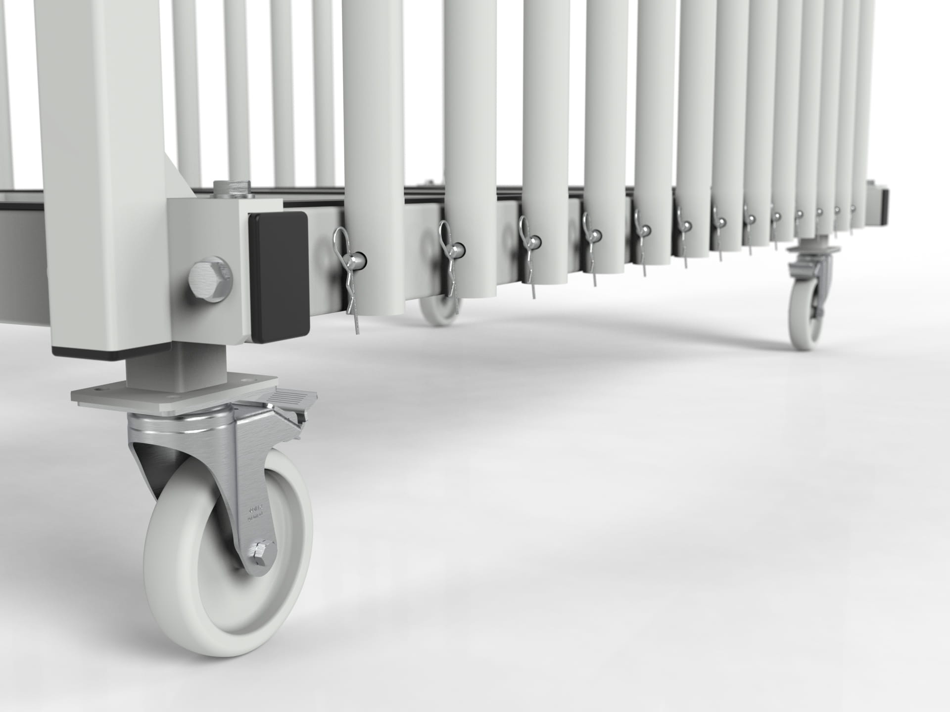 - four wheels with a diameter of 125 mm, each swivel with a brake