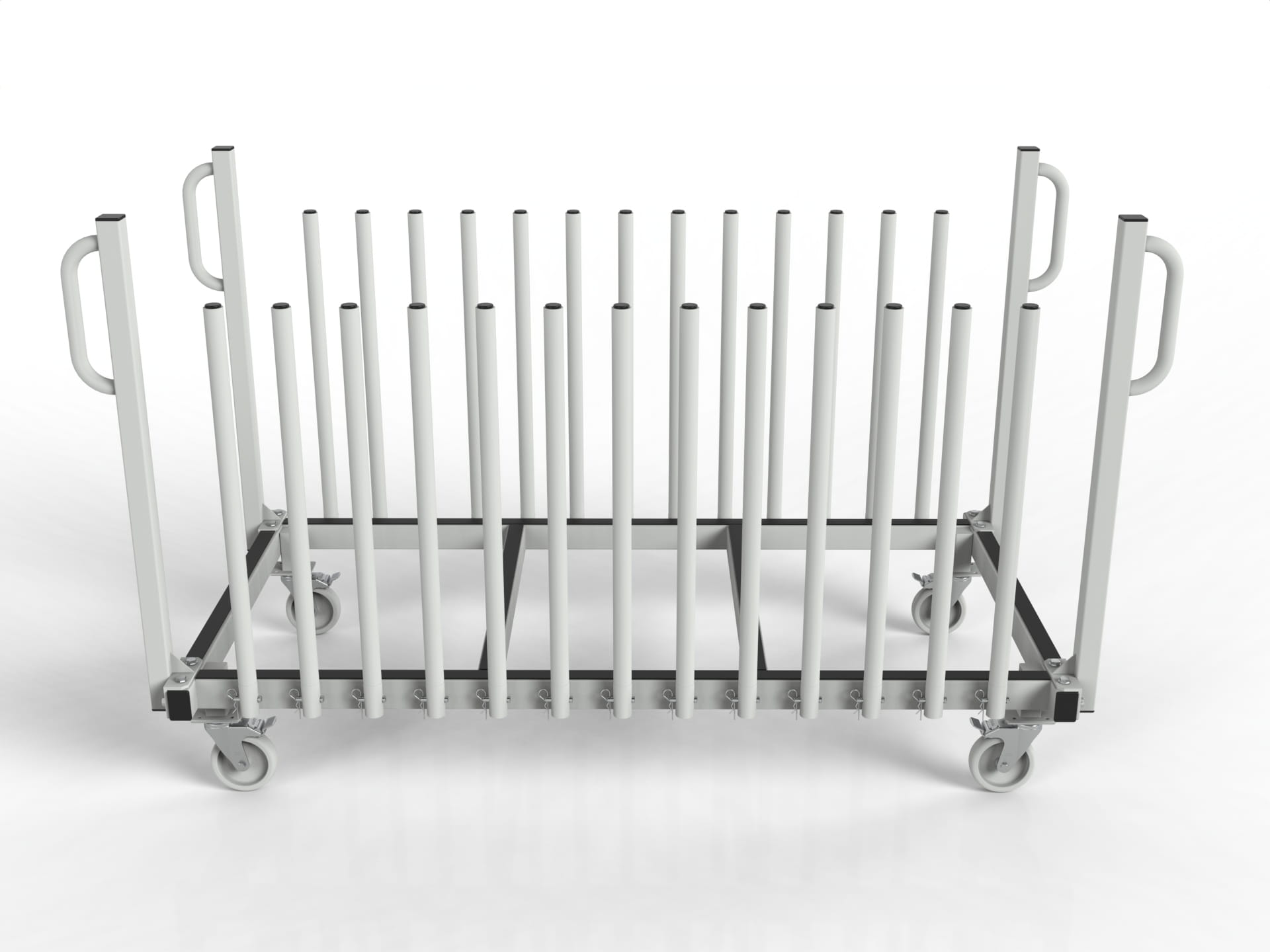Specialized trolley designed for transporting elements undergoing painting. Its base is a steel profile structure covered with grooved rubber which prevents scratching of elements placed on it. A set of 26 steel arms in total allows for convenient and safe transport of objects - each arm is covered with a plastic hose, which protects the transported items from damage. Mobility is ensured by 4 swivel wheels with a diameter of 125 mm, each with a brake. WE-12963 will prove useful in industrial and workshop paint shops, warehouses or services for transporting both metal and e.g. wooden or plywood elements.