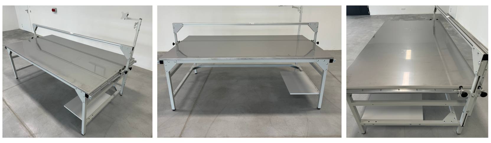 - table top 2200x1200 mm (2204x1204 mm with ABS veneer), made of melamine-coated chipboard 25 mm thick, additionally covered with stainless steel sheet for increased resistance, height from the floor approx. 806 mm