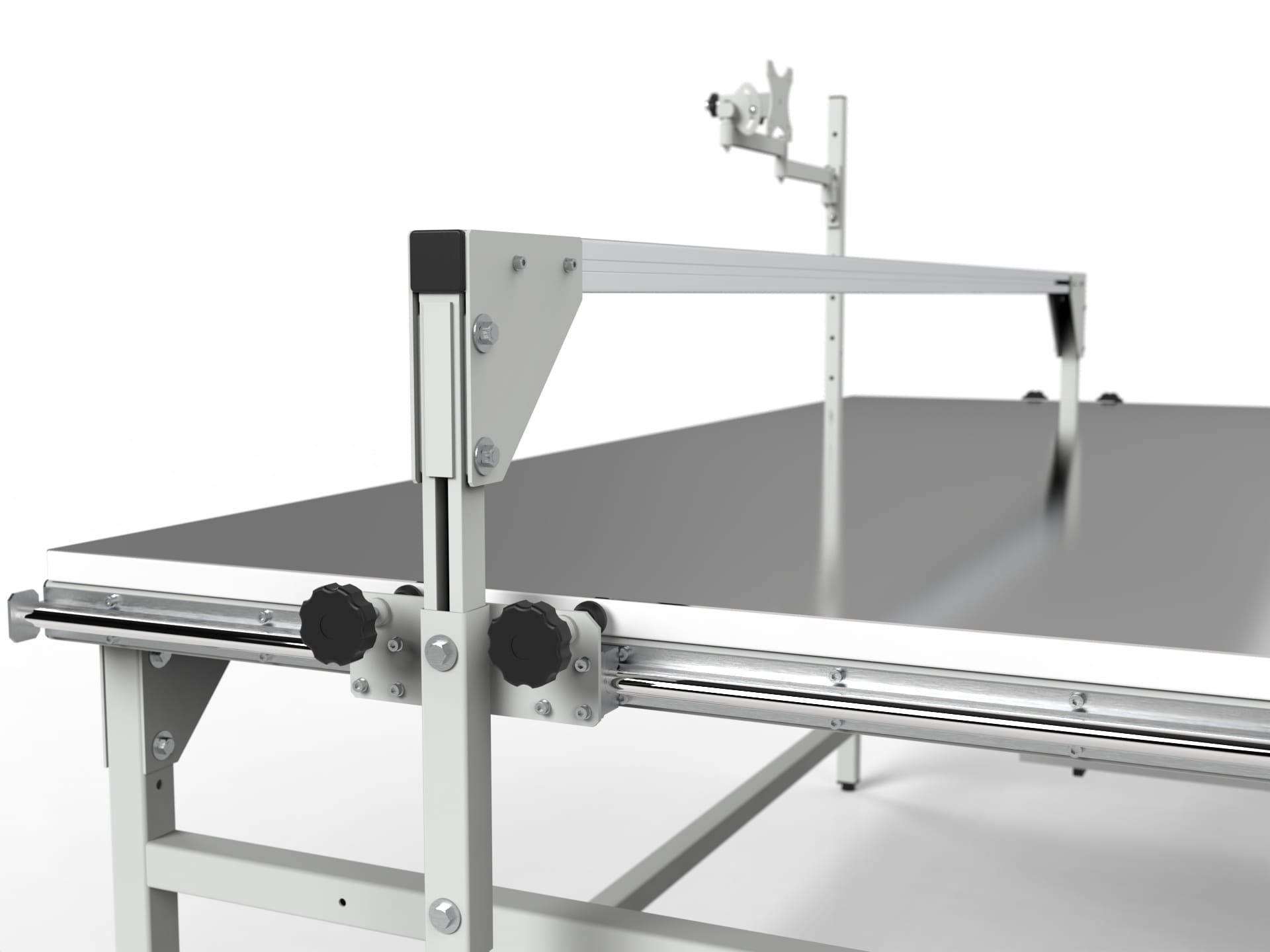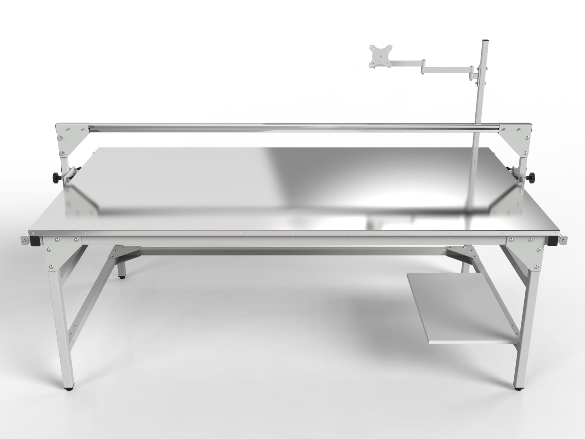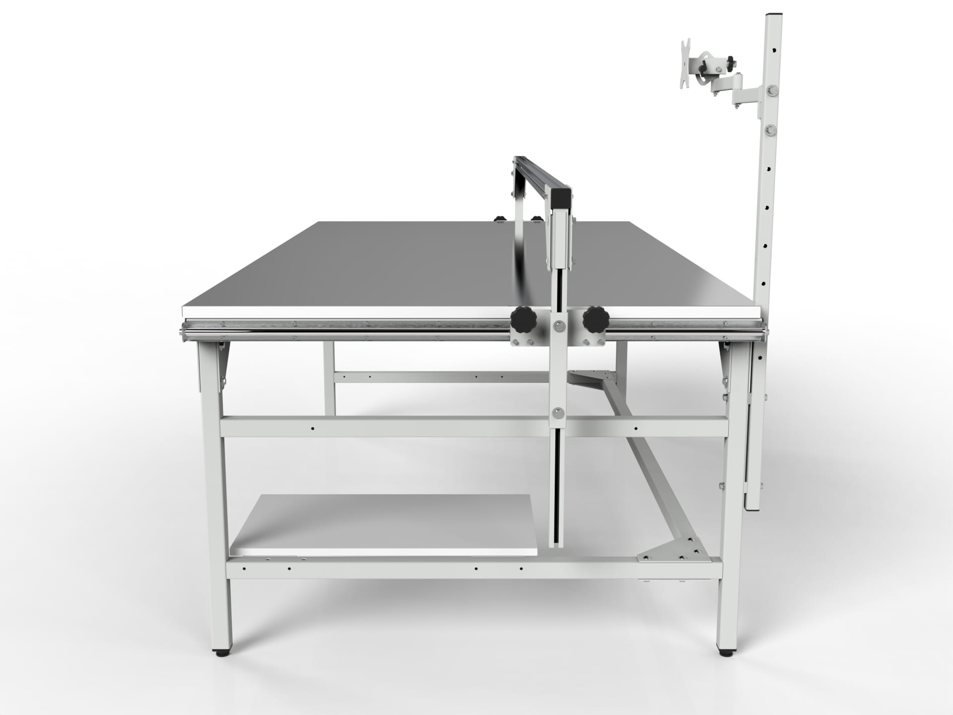 SMW-1222-10853 measuring table with a movable guide for mounting calipers, a monitor holder and a computer shelf