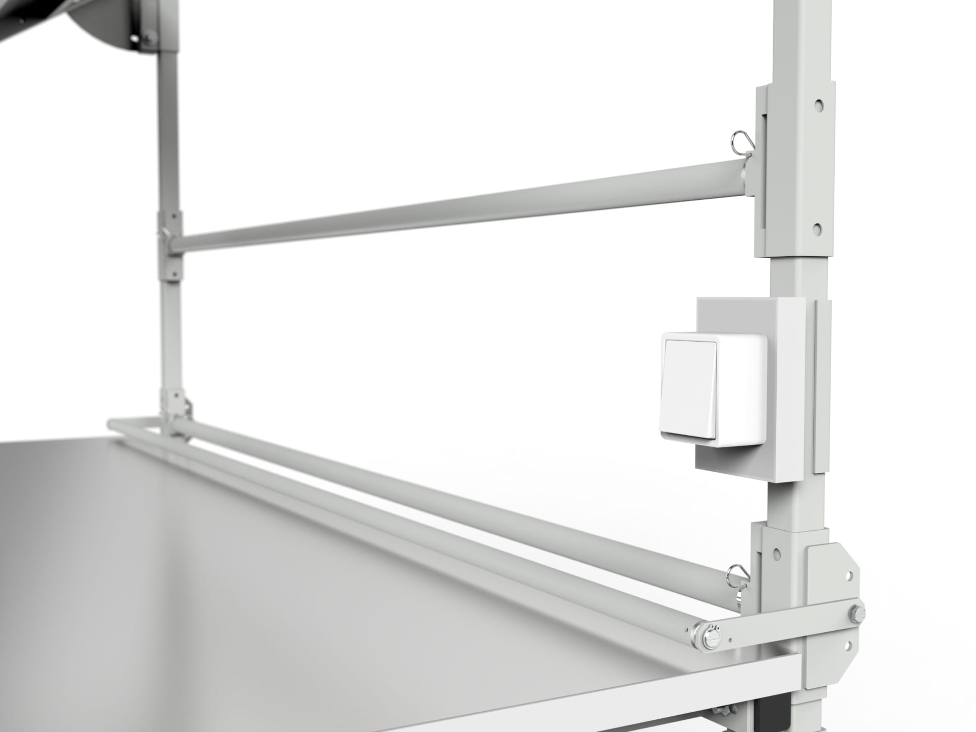 - ergonomic smooth adjustment of the table top height (range 790-1140 mm) and accessories on the upper table frame (on screws)