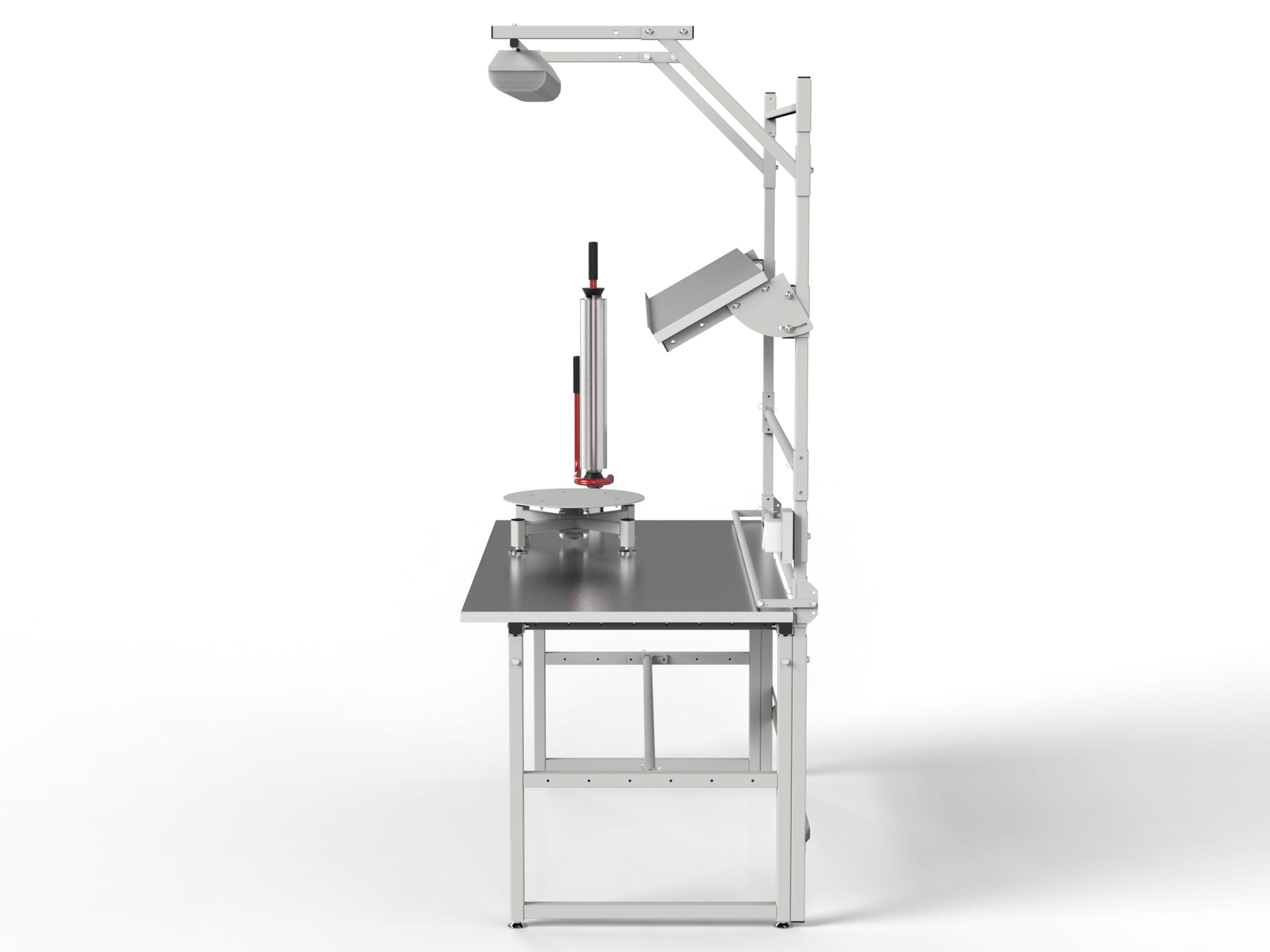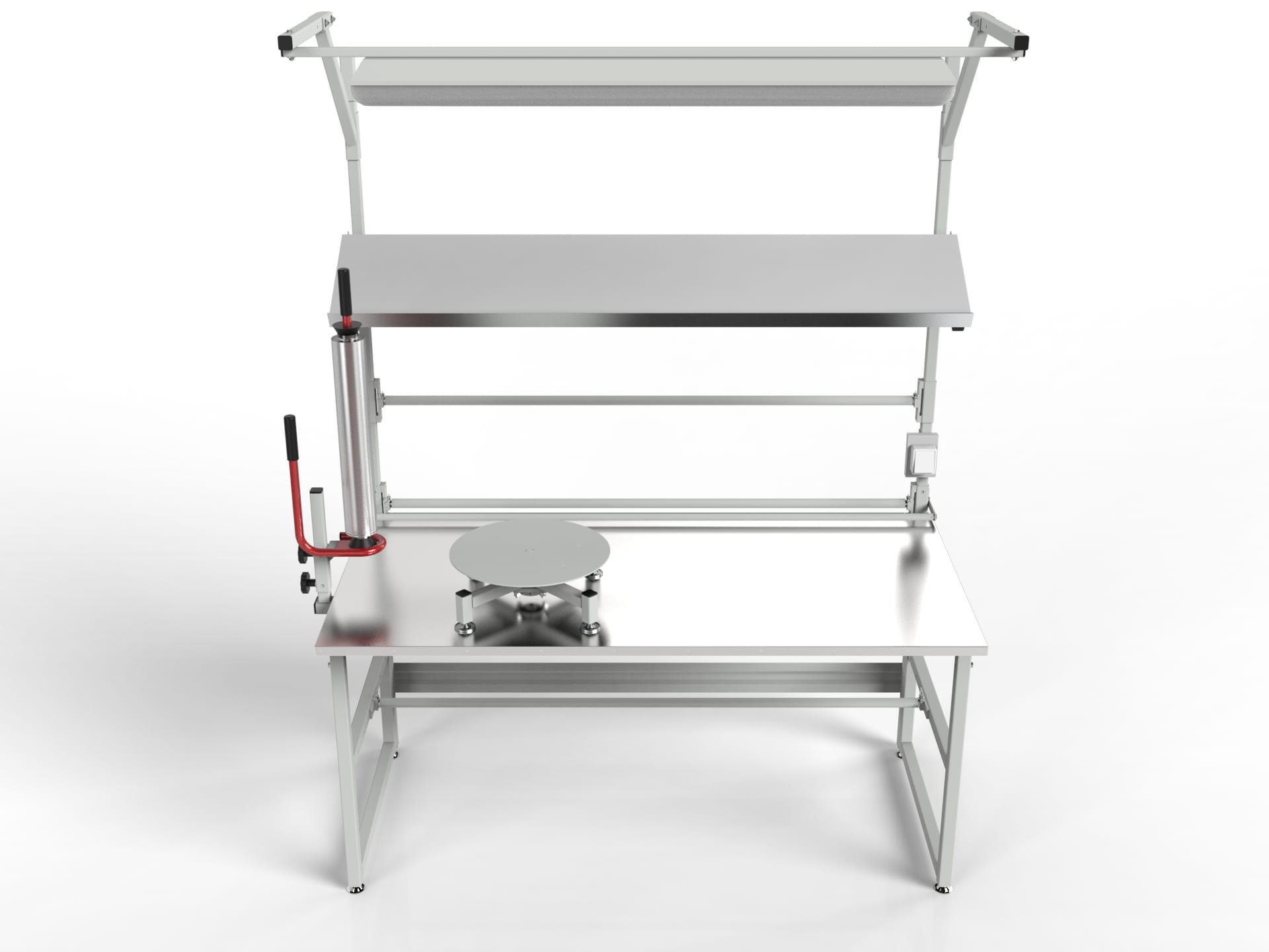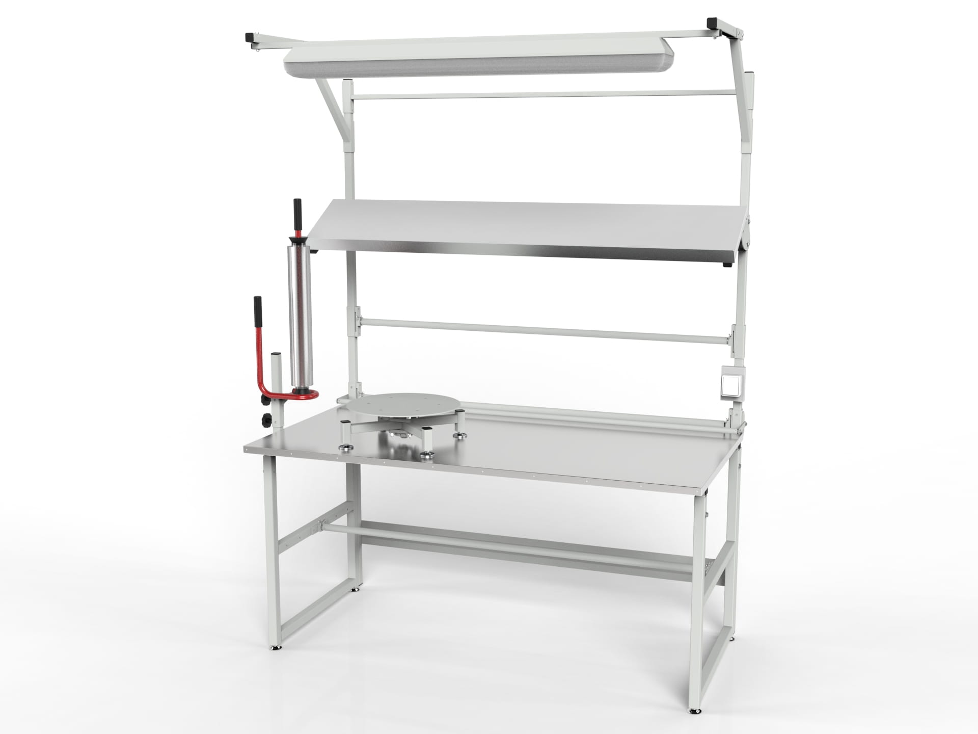 SPR 1600x800 packing table with rotating platform, wrapping machine and central lighting