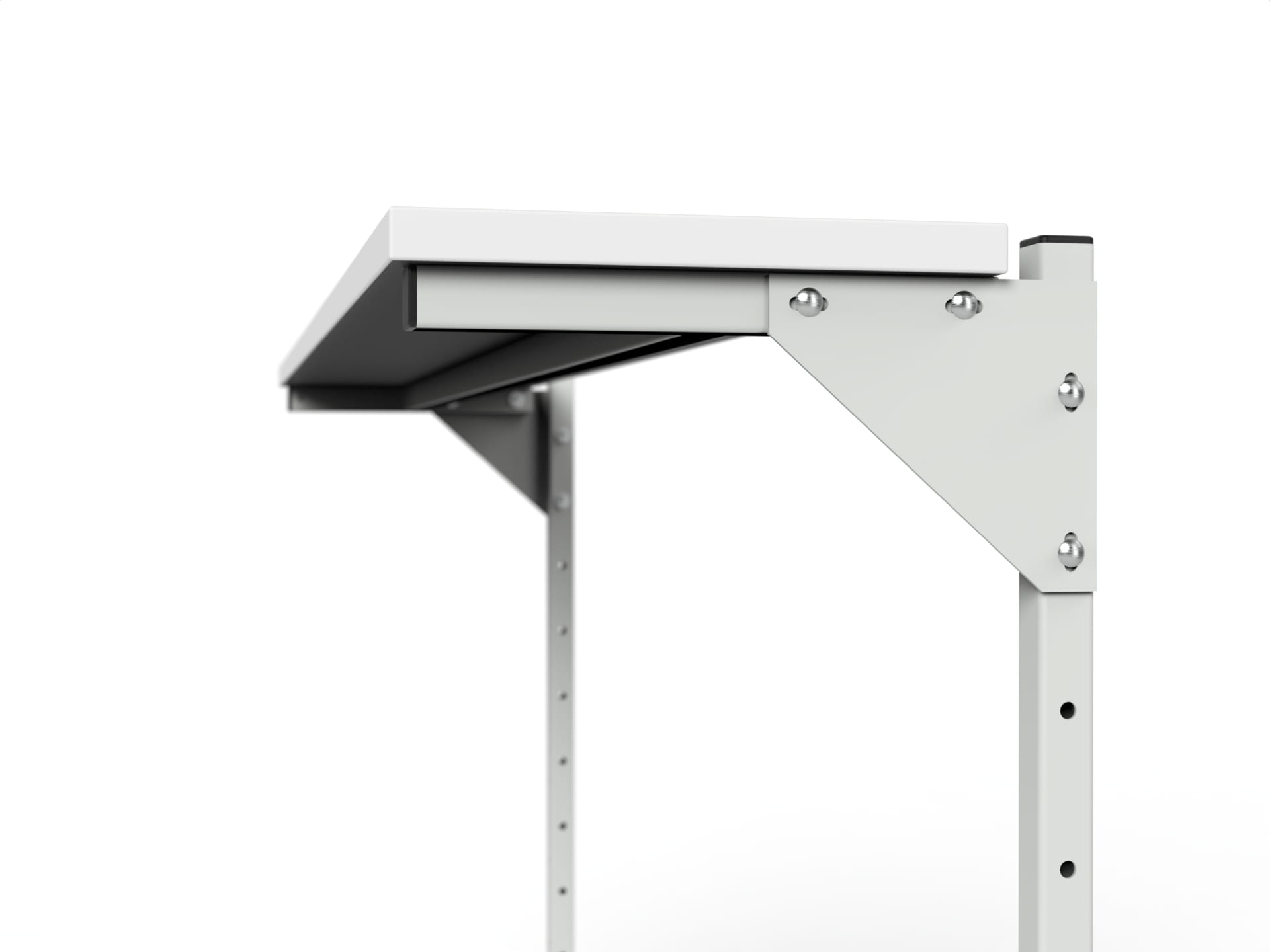 PSM shelf for tables with fixed height SM and SMP. Shelf used as an additional for SMP adjustable tables (with a shelf) that already have a shelf or for SM tables without a shelf as new (if it was bought without an SM shelf). Shelf can't be used in adjustable tables. Shelf is identical to the basic one. There is possibility of placing shelf 300 or 400 mm above the table top or the basic one. Shelf without the possibility of adjusting the angle of inclination. For tables with central lighting with a constant height we can use the shelf PSM-02 or PSM-03 (with adjustable inclination angle).
