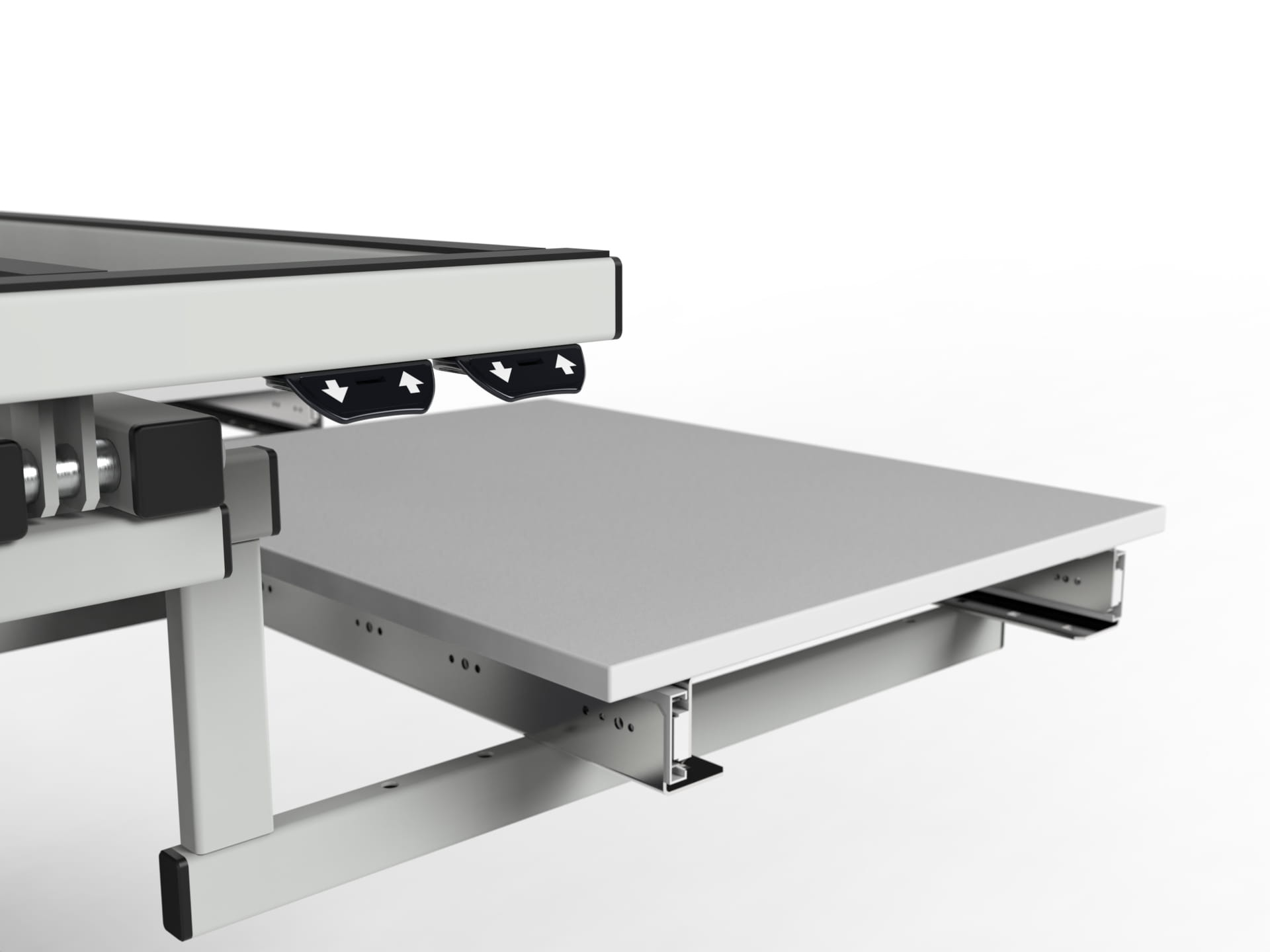 - double adjustment; height from 759 to 1149 mm and angle of inclination 0-70°, adjustable by means of remote controls under the top, depending on the batch, the columns can be in black or grey